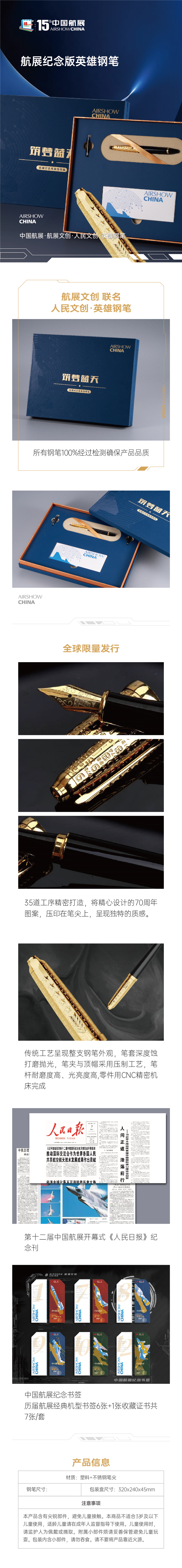 China Airshow Commemorative Edition Hero Fountain Pen - Stunning Luxury Pen, Gilded Nib (Medium), Best Pen Gift Set for Men & Women, Professional, Executive Office, Nice Pens